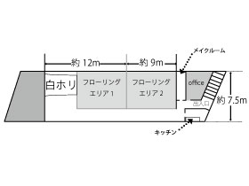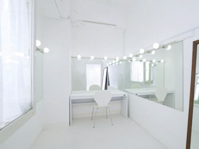80坪の大型スタジオです。フローリングエリアでの室内イメージの撮影、カタログ用商品撮影、広さを生かした複数班同時撮影など、効率の良い撮影が可能です。人物撮影に欠かせないメイクルームや1面Rの白ホリゾント、十分なひきのとれるスペースなど、モデル撮影・タレント撮影・ポートレート撮影にも最適です。